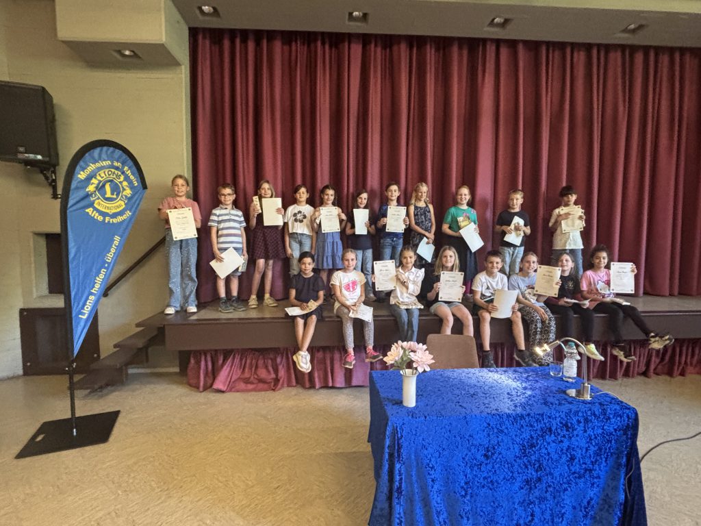 Jeder der Bestplatzierten erhielt neben einer Urkunde ein von der Bücherstube Rossbach gesponsertes Buch sowie einen von unserem Lions-Förderverein gestifteten Büchergutschein für die Schulbücherei seiner Grundschule. Auch alle anderen Teilnehmer erhielten aufgrund ihrer sehr guten Leistungen – schließlich waren alle schon Klassensieger ihrer Grundschulklassen geworden – ein großes Lob der Jury sowie einen kleinen Preis und eine Urkunde.